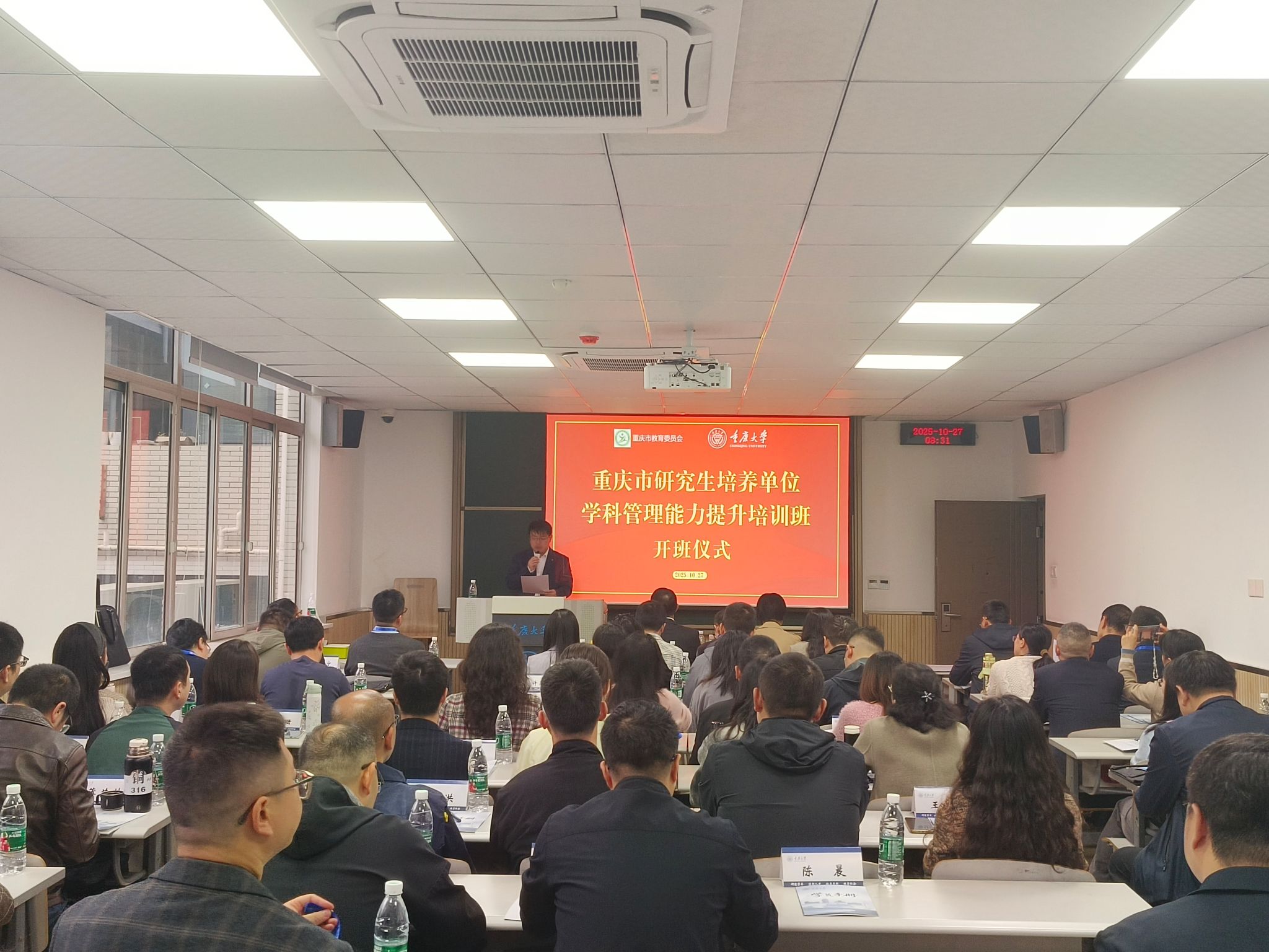 为深入贯彻落实全国及全市教育大会精神,推动教育强市战略深入实施,切实提升重庆市研究生培养单位学科管理能力和水平,10月27-31日,由重庆市教育委员会主办、重庆大学继续教育学院承办的“重庆市研究生培养单位学科管理能力提升培训班”在重庆大学沙坪坝校区A校园成功举办。本次培训围绕高校学科发展核心需求,聚焦政策、规划、评估、服务四大关键维度,系统提升高校学科管理干部的学科建设统筹规划与高校管理能力,汇聚全市21所相关单位的60名学科与研究生管理干部、学科带头人、学科方向带头人、系主任、骨干教师参与培训。