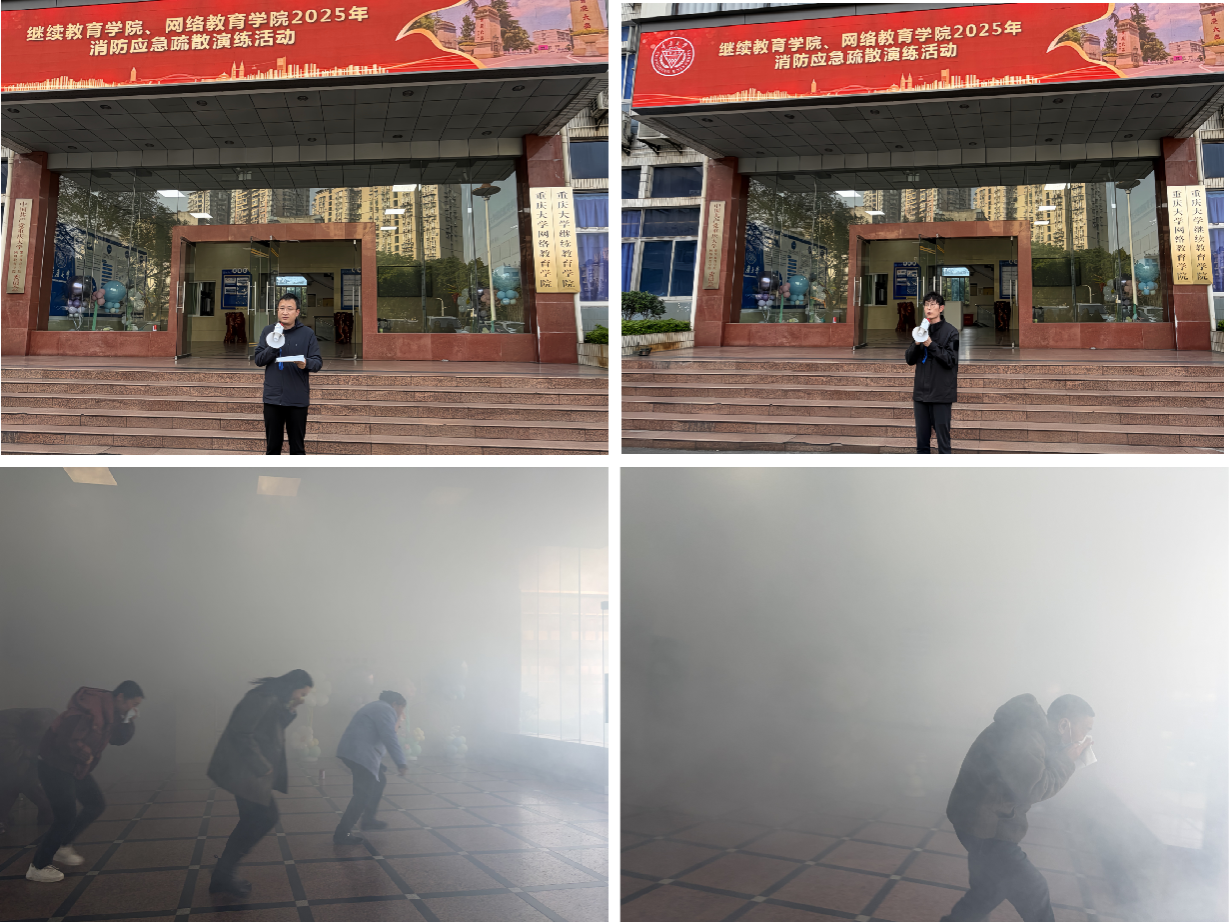 2025年11月28日下午,继续教育学院、网络教育学院在学校保卫处大力支持下,在沙坪坝校区C校园开展了消防应急疏散演练与安全培训活动。学院教职工及后勤物业人员共计80余人参与。学校保卫处贺兵副处长等出席活动并进行指导。