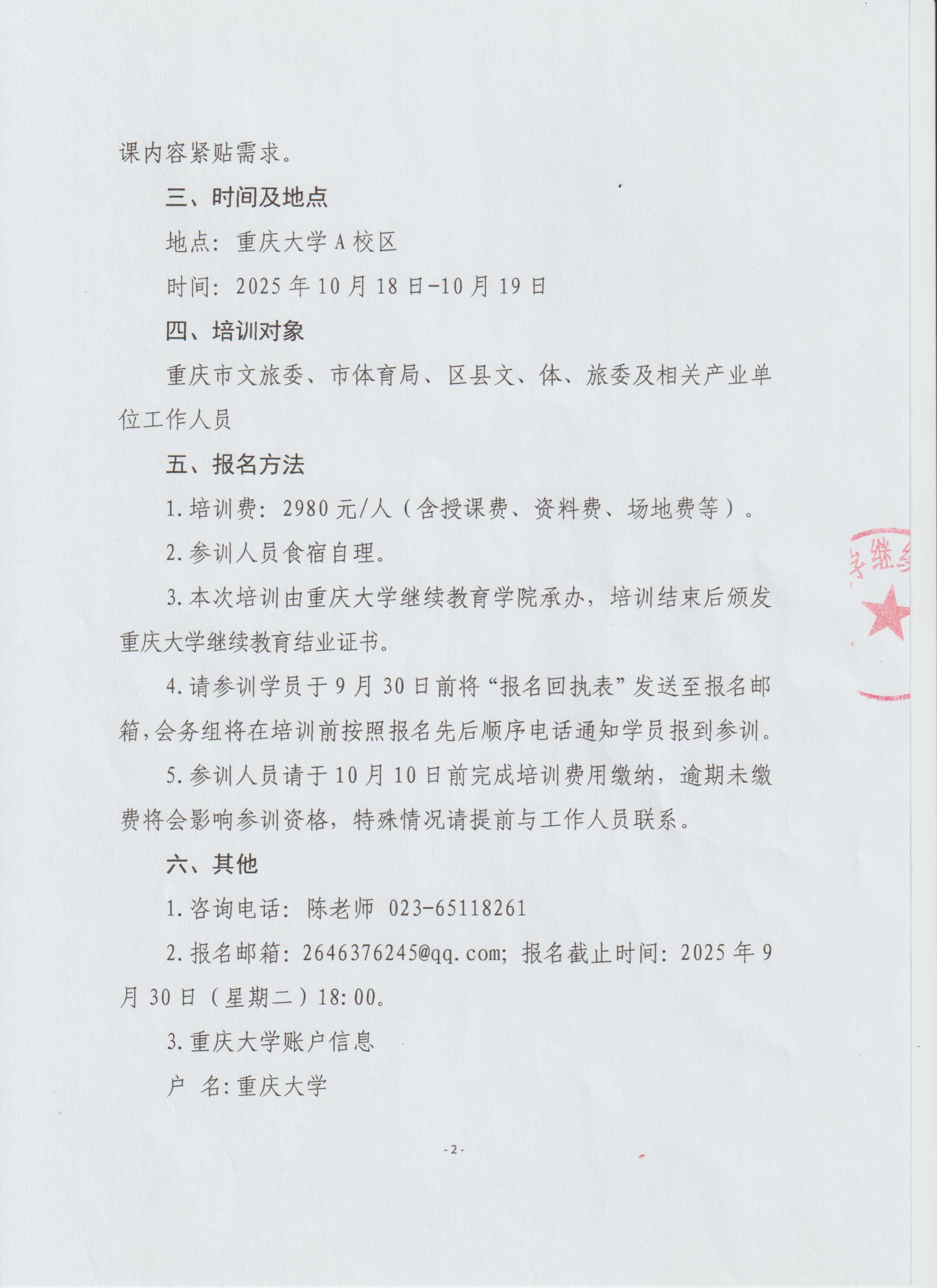关于重庆市文体旅系统从业人员业务能力提升专题培训班(数字经济方向)的通知