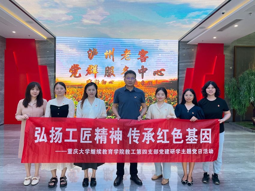 2025年6月5日,重庆大学继续教育学院教工四支部7名党员在副院长孙伟带领下,赴泸州老窖酿酒有限责任公司开展“弘扬工匠精神 传承红色基因”主题党日活动。通过实地参观中国第一窖酿酒基地、泸州老窖博物馆及党群服务中心,深入交流党建赋能企业创新、文化传承与品牌建设的实践经验。