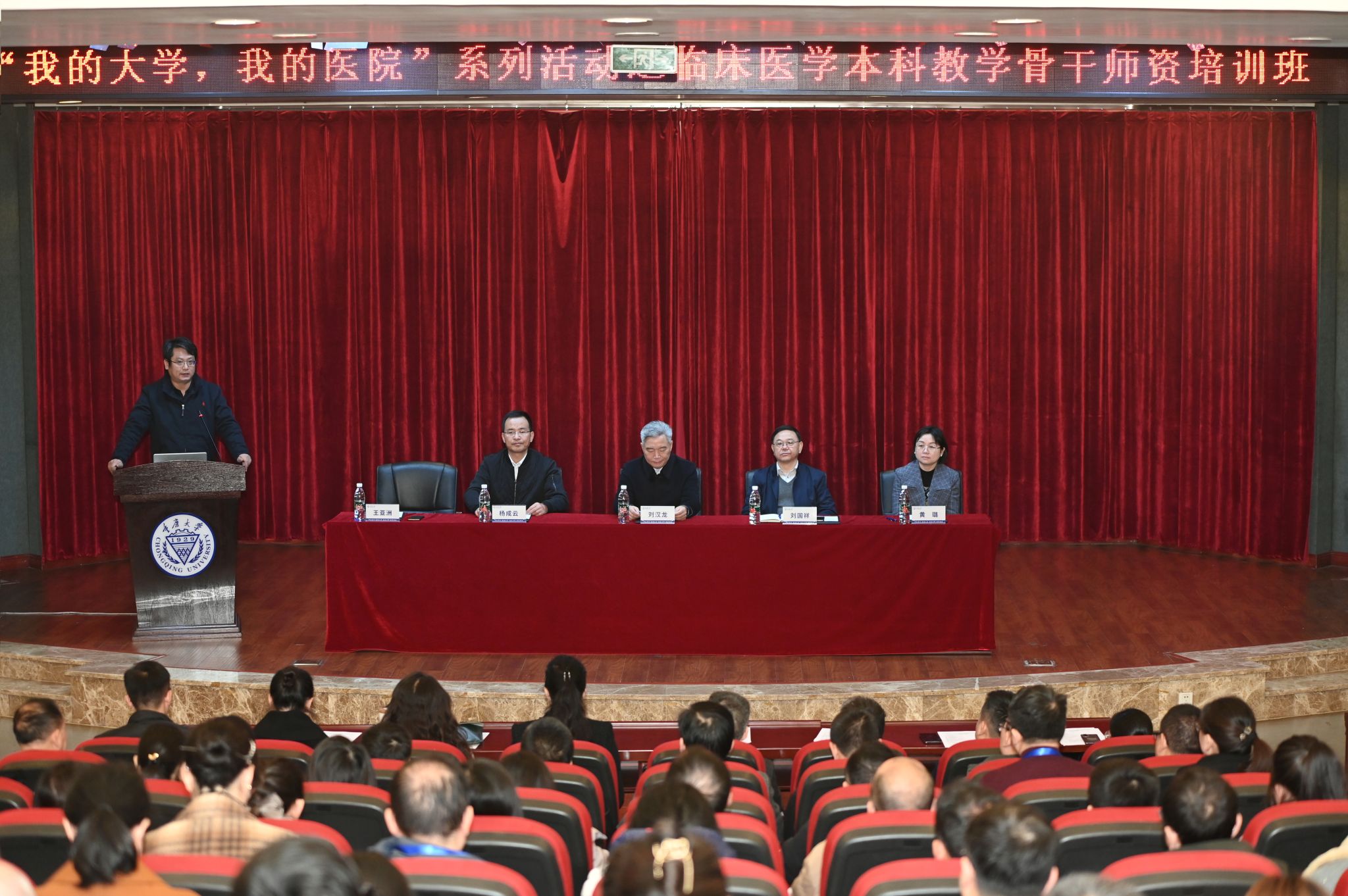 刘汉龙回顾了我校医学学科恢复建设的过程,进一步强调了“高起点、研究型、入主流、有特色”的医学院发展路径,并向此次参训的全体学员提出三点希望及要求。一是要深刻认识本次培训的重要意义,珍惜每一次学习培训的机会。二是要同心同向,持续做好医院与学校的融合发展。三是要加强学科建设和人才培养,打造医教研协同发展新高地。同时,他祝愿全体学员能够在培训中学有所感、学有所得、学有所为,也祝愿“我的大学,我的医院”系列活动能够长期顺利地开展下去,真正办出实效、办出特色、办出品牌。