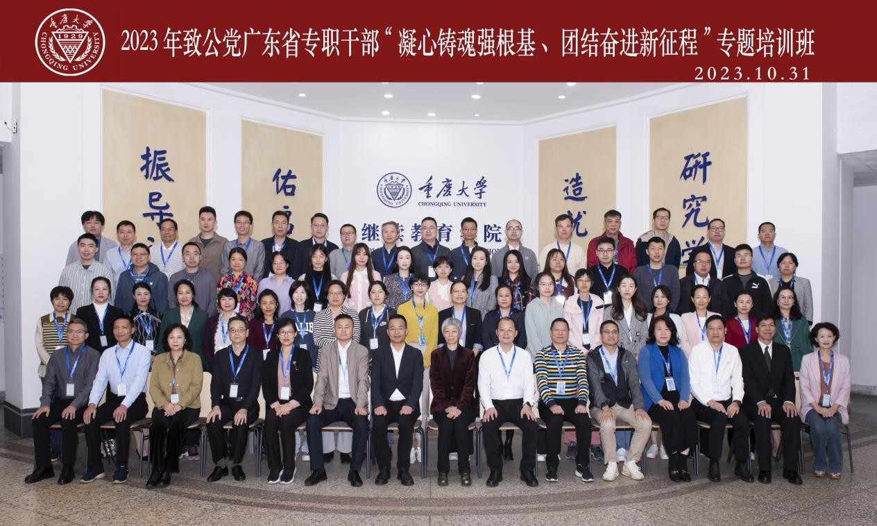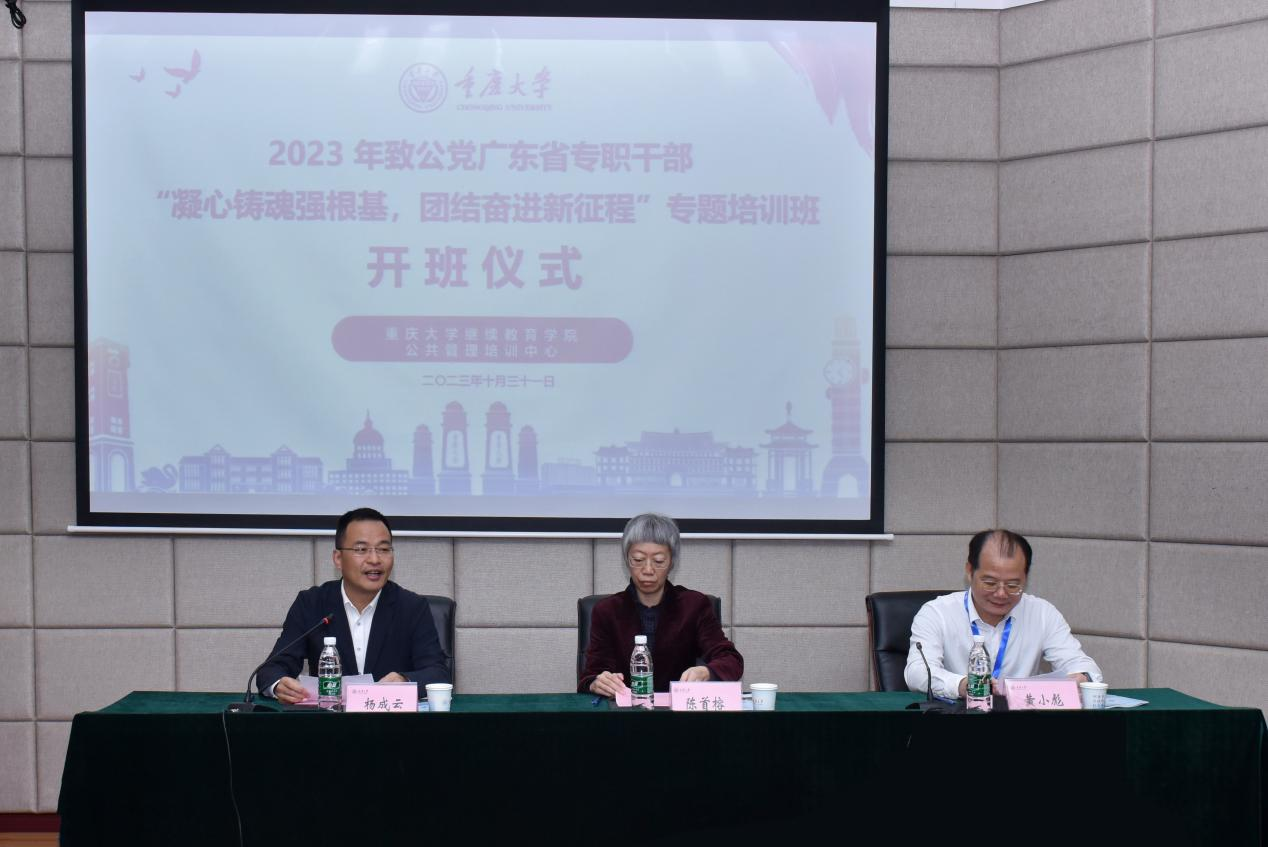 10月31日,2023年致公党广东省专职干部“凝心铸魂强根基、团结奋进新征程”专题培训班在重庆大学C校区顺利开班。致公党中央组织部副部长陈首榕,致公党广东省委会专职副主委黄小彪,重庆大学继续教育学院、网络教育学院院长杨成云出席了开班仪式。来自致公党广东省委的70名专职干部参加了此次培训。