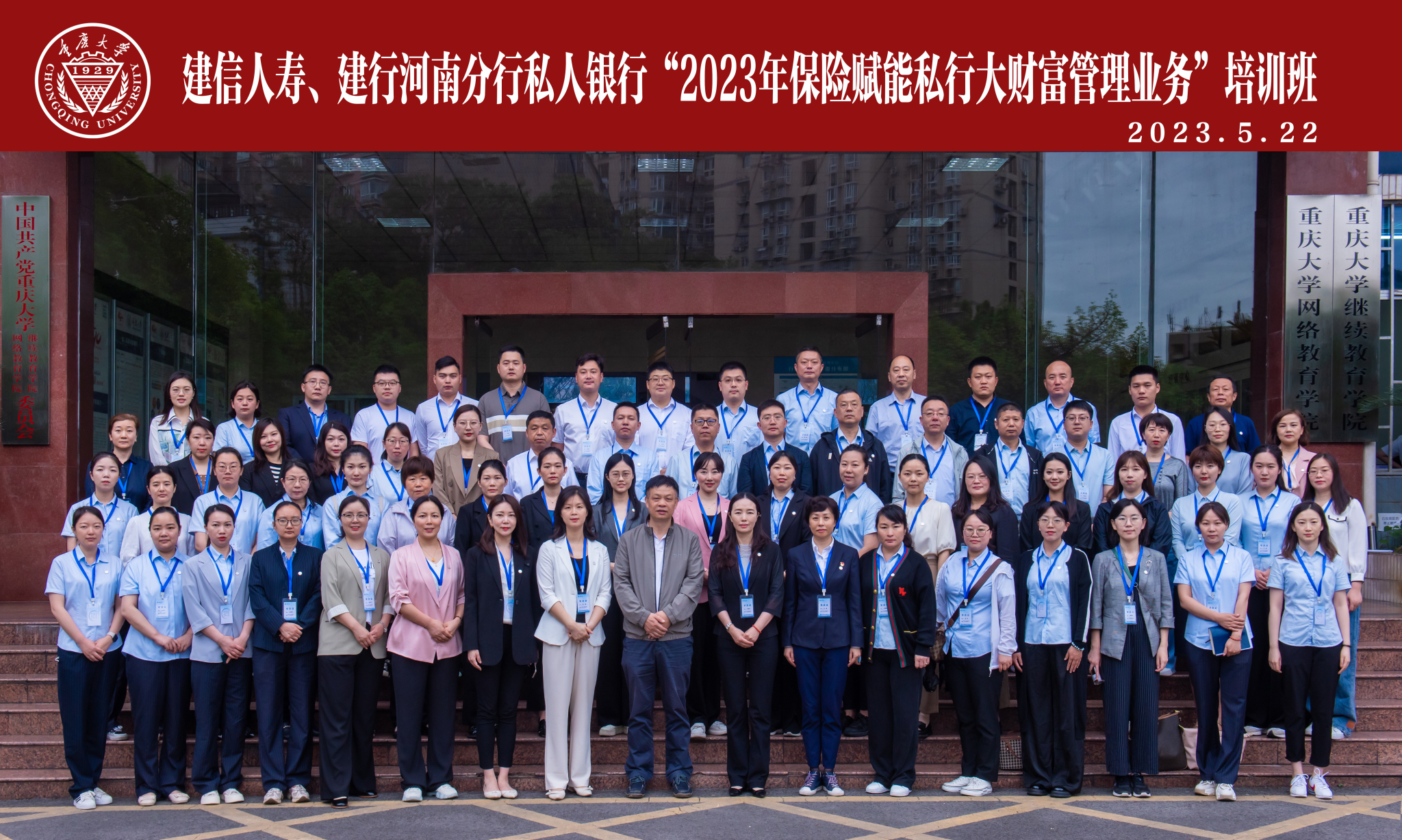 5月22日上午,建信人寿、建行河南分行私人银行“2023年保险赋能私行大财富管理业务”培训班在重大C区第一教学楼顺利开班。建设银行河南省分行私人银行部副总经理王韶华,建信人寿河南分公司总经理助理汪静,重庆大学继续教育学院、网络教育学院副院长刘敢新出席开班式。