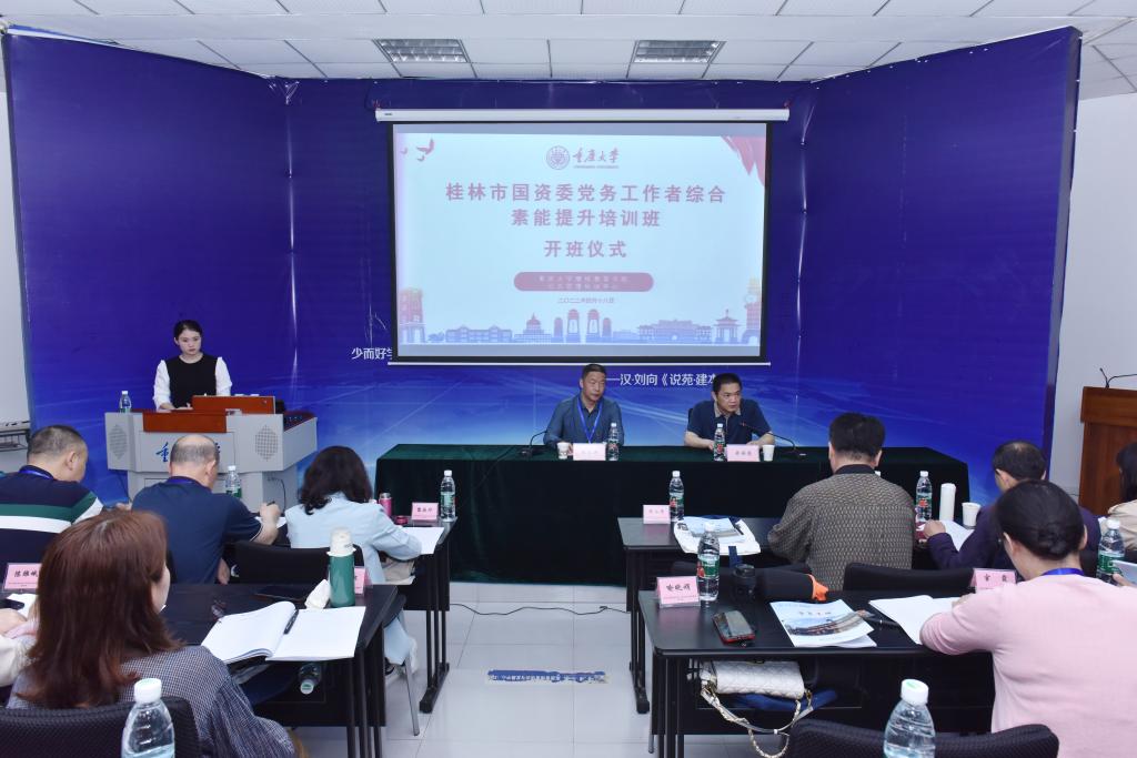 2023年4月18日,由桂林市国资委主办、重庆大学继续教育学院承办的“桂林市国资委党务工作者综合素能提升培训班”在重庆大学C校区第一教学楼1002教室成功开班。桂林市国资委机关党总支书记、四级调研员陈永涛,重庆大学继续教育学院、网络教育学院党委书记黄世荣出席了开班仪式。来自桂林市国资委党委监管党组织部分央企、区属企和委机关以及市属企业党建工作负责人和党务工作者83人参加了培训。