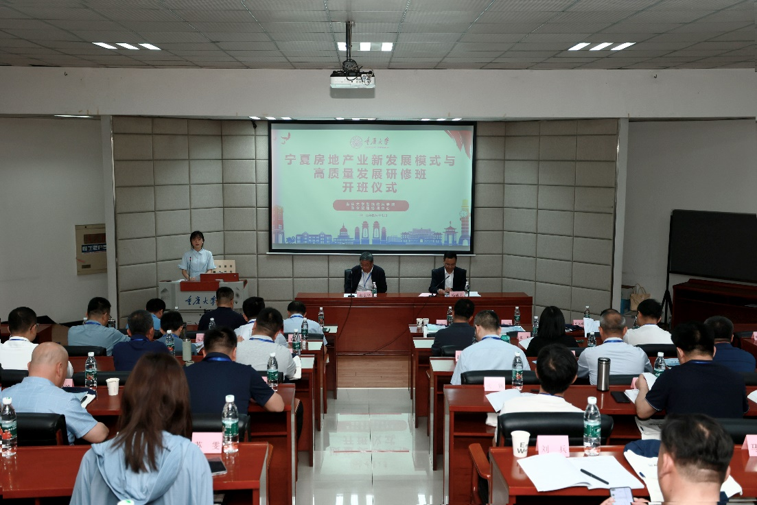 2023年04月17日,宁夏房地产业新发展模式与高质量发展研修班开班典礼在重庆大学继续教育学院第一教学楼1110教室举行。自治区住房和城乡建设厅党组成员、副厅长袁京平,重庆大学继续教育学院院长杨成云,以及宁夏房地产业新发展模式与高质量发展研修班的全体学员50人出席开班典礼。