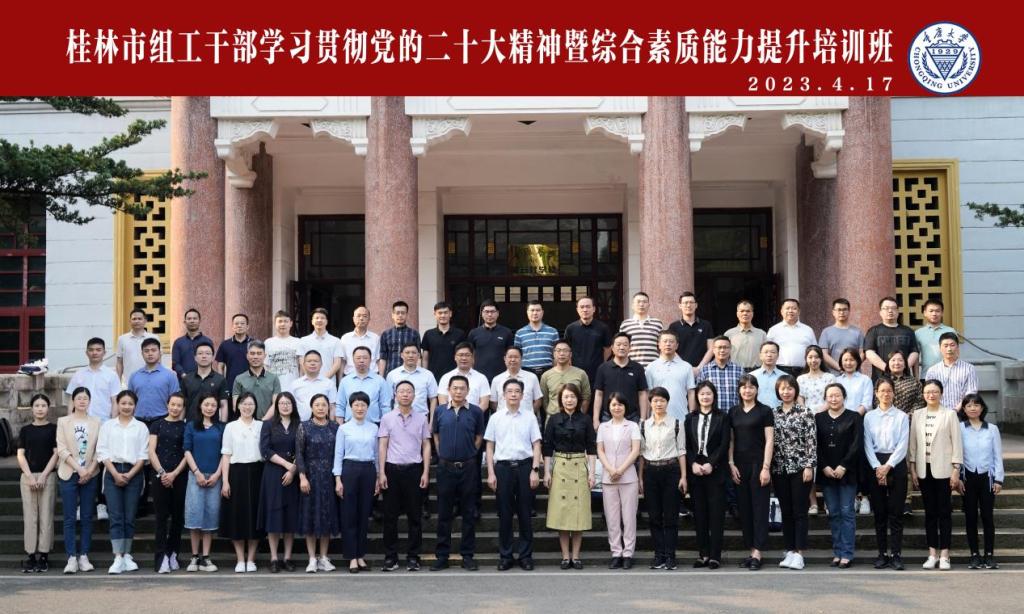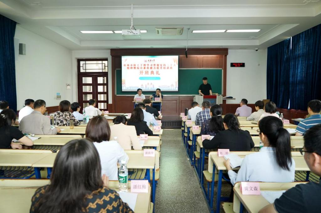 4月17日上午,桂林市组工干部学习贯彻党的二十大精神暨综合素质能力提升培训班(一期)在重大A区第五教学楼顺利开班。桂林市二级巡视员蔡泽军、桂林市委组织部常务副部长林兵、驻桂林市委组织部纪检监察组组长唐明宇,重庆大学继续教育学院、网络教育学院党委书记黄世荣出席开班式。