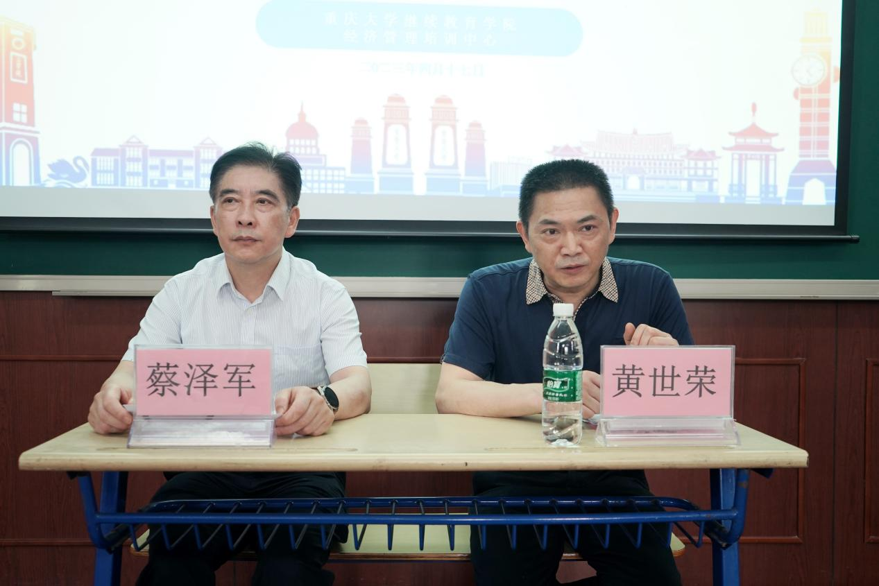 蔡泽军致欢迎辞,他对黄书记以及各位老师的辛苦付出表示衷心地感谢。随后,他对本次培训提出一些希望和目标,希望大家在学习上、行动上、思想上都可以得到提升,去学习传承重庆的红色文化。最后,他强调培训纪律的重要性,希望大家遵守课堂纪律及重庆大学各项规定,注意各项安全,祝愿大家学习愉快。