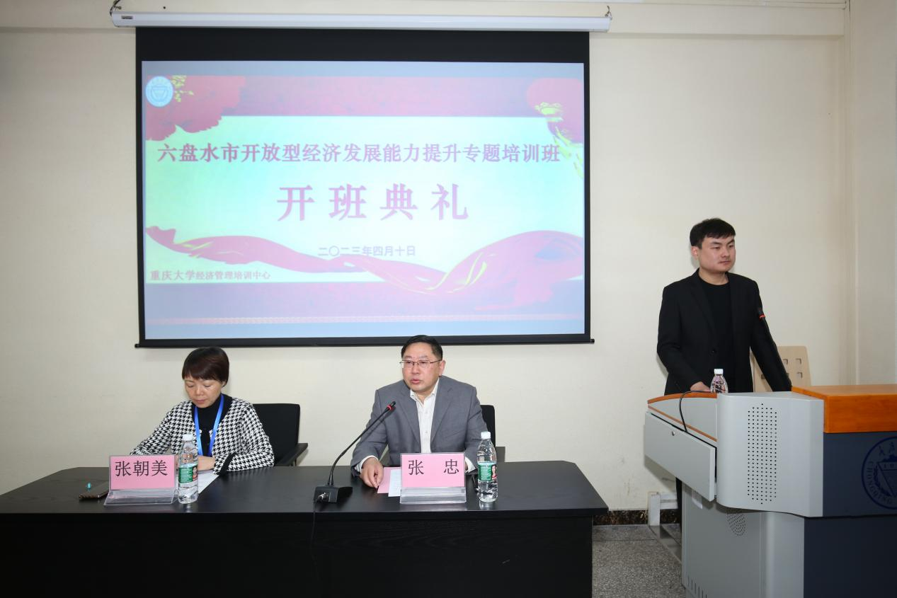 由重庆大学继续教育学院经济管理培训中心承办的“六盘水全市开放型经济发展能力提升培训班”,于2023年4月10日上午8:30在重庆大学C校区举行开班典礼。贸促会六盘水支会专职副会长张朝美,重庆大学继续教育学院、网络教育学院副院长张忠以及六盘水市开放型经济领导小组成员单位、各市(特区、区)、各开发区相关领导干部共50人参加了此次开班典礼。